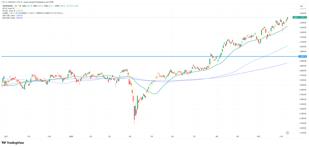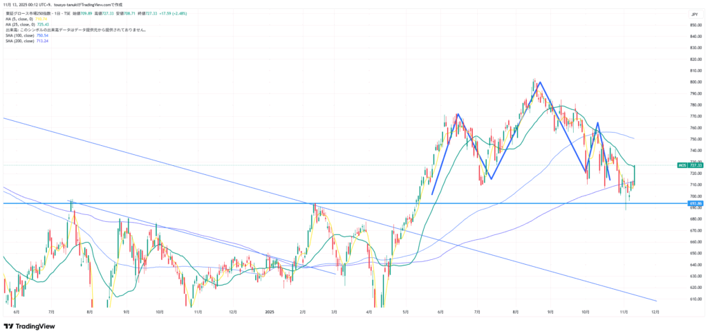 グロースも強い。決算系がぶち上げてたが、要注目ではあると思う。日経が休んでいる間にトピックスとグロースが上昇するのが本筋?