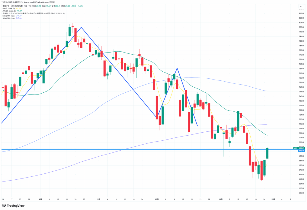 アメリカのハイテクがリバったので全体的に半導体が上昇。エヌビディアが下がっているところをみると正直チャッピー一強ではなくなってきた印象。1銘柄に集約されていくのか興味深い。