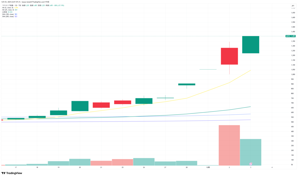 ラクオリア <4579> [東証G] 空売り買い戻しで踏み上げ相場の様相