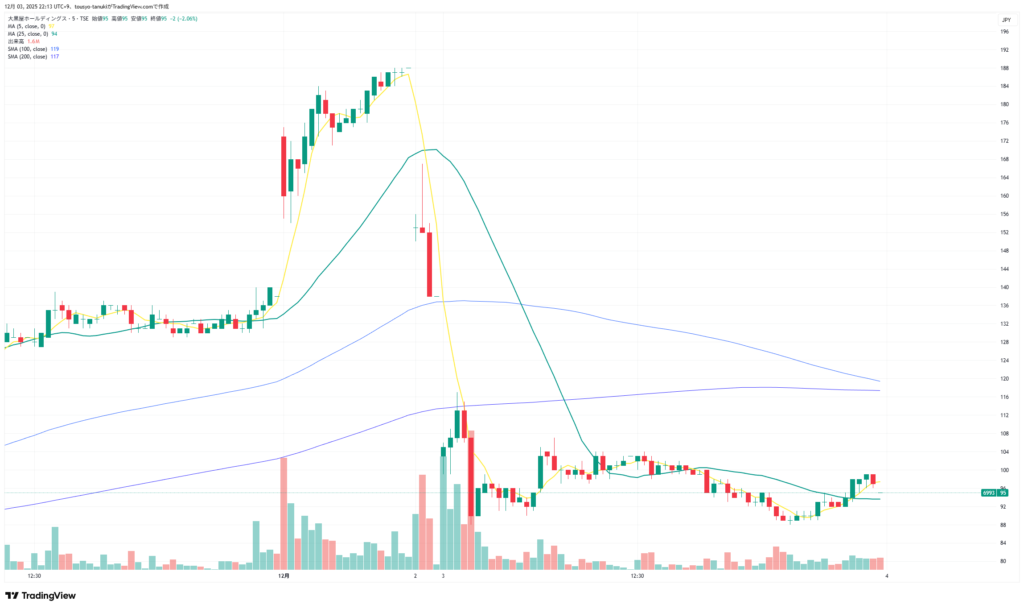大黒屋。大損したけど、このチャートは入っておきたい。さらに損切重なる可能性あるけど、これは我慢…。