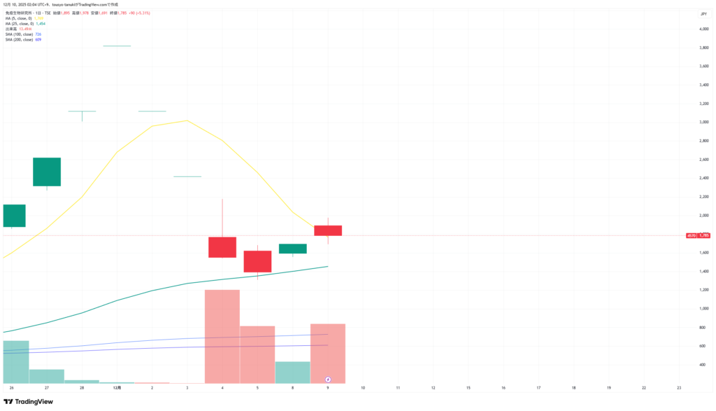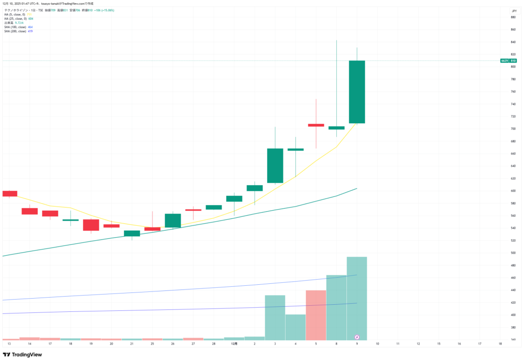 とにかくロボット関連が強い。明日以降も流れに注目。一番筆頭はヒーハイストかテクノホライズンかな。デルタフライは一応監視?
